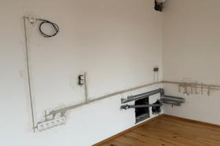 V Praze 3 v novostavbě byla již provedena příprava na kuchyň, klient ale změnil její dispozice a tak bylo nutné provést úpravu rozvodů a připravit zásuvky a přípojná místa na jejich správnou pozici. Zároveň bylo nutné provést posun vývodů pro vodu a odpadu na pozici pod dřez. Klient neměl žádný požadavek na modelovou řadu vypínače a zásuvek, nainstalovali jsme řadu ABB model Linie.