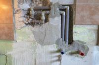 Jako další bylo provedeno přesunutí vody na novu pozici dřezu. Po demontáži a vybourání zdi kolem trubek bylo možné rozhodnout o způsobu napojení na původní kovové rozvody. Viz. obrázky. Vedení bylo uloženo do zdi a na nástěnky byly umístěny roháčky. Protože se voda napojoval na původní rozvod bylo komplikované provést křížení a tak se voda pod dřezem nechala prohozená.
