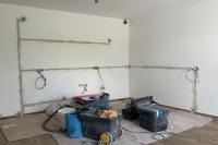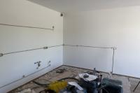 Pro novou kuchyň v novostavbě jsme provedli podomítkovou přípravu rozvodů elektriky a nadomítkovou přípravu přívodů vody a odpadu