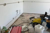 Z nezvykle připravených přívodů od developera jsme museli provést odříznutí lamina a lišty abychom mohli kabely uložit do zdi.