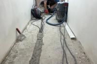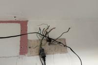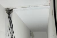 Protože ve stropním panelu nebyla dutina pro protažení kabelů, prováděli jsme mělké drážky 5mm pro uložení kabelu CYKYLO-J 3x1,5