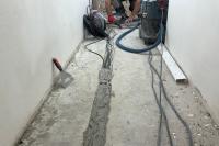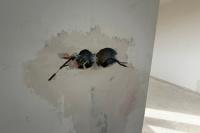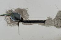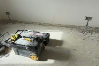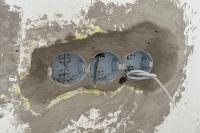 Otvory pro krabice KP68/2 jsme vyřezávali pomocí úhlové brusky a vysekávali pneumatickým kladivem.