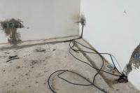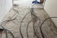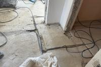 Podomítková elektroinstalace v panelovém bytě s použitém nášlapné vrstvy betonu a vertikálními drážkami k zásuvkám, vypínačům a světlům.