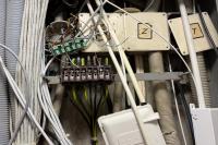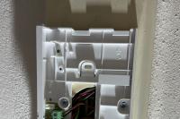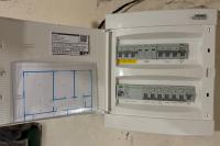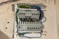 V panelovém bytě jsme provedli kompletní podomítkovou elektroinstalaci s novým rozvaděčem a napojením bytového rozvaděče na RS svorky v chodbě.detail