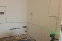 Elektroinstalace byla vedena kompletně podomítkově s napojením na připravené přívody od developera. Všechny drážky byly zasádrovány a následně přetmeleny tmelem UNIFLOT a následeně přebroušeny.