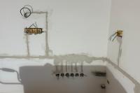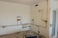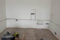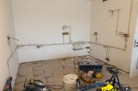 Podomítková elektroinstalace pro novou kuchyň a nadomítková instalace vody a odpadu.