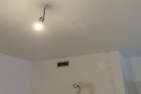 Po dohodě s klientem byl spínač pro LED posunut blíže ke dveřím a zároveň zde bude také ovládáno nově přidané stropní světlo pro kuchyň. Po přetmelení stropní drážky a jejím přebroušení jsme provedli přemalování barvou Primalex Plus.
