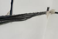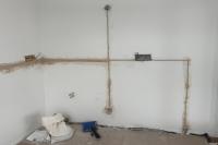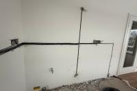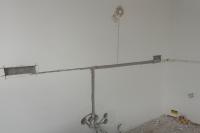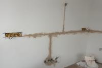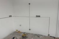 Veškerá elektroinstalace byla provedena podomítkově s použitím instalačních krabic KP68/2. pro zásuvky nad pracovní plochou byly vytvořeny kapsy pro krabice do dutých stěn. Ty bydou osazeny po instalaci kuchyně a montáži obkladové desky.
