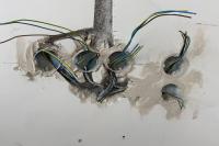 Příprava od developera byla v nadomítkové instalační krabici, která byla v kolizi s kuchyňskými skřínkami a spotřebiči a tak byla demnotována a namísto byly instalovány podomítkové krabice ve kterých bylo provedeno napojení okruhů.